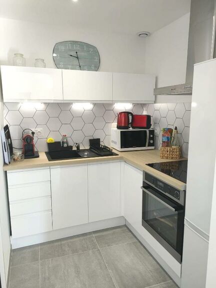 Cet appartement avec climatisation se compose de 1 chambre, d'un salon, d'une cuisine entièrement équipée avec un réfrigérateur et une machine à café, ainsi que de 1 salle de bains avec une douche et des articles de toilette gratuits.