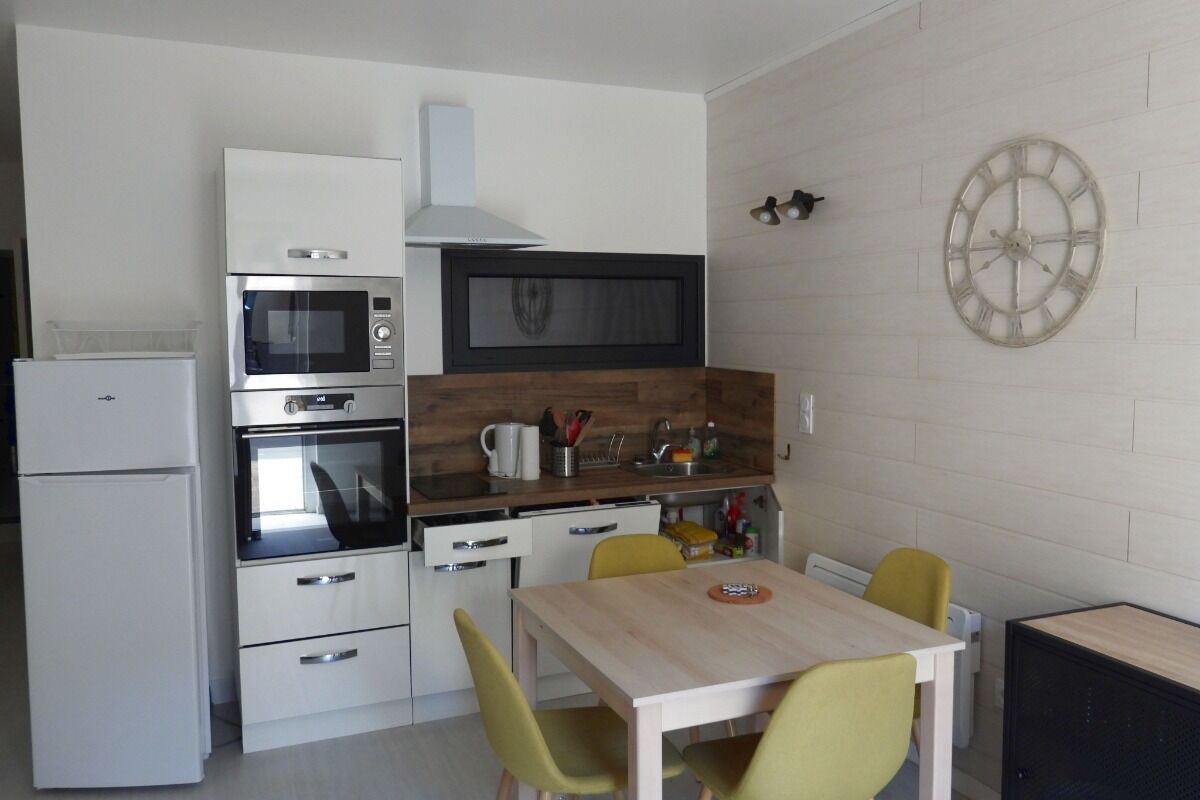 La location de vacances est équipée de manière fonctionnelle pour répondre à tous vos besoins pendant votre séjour. Dans la cuisine se trouve : Four, micro-onde, lave-vaisselle. Un salon avec un clic-clac confortable ainsi que la télé et la wifi.