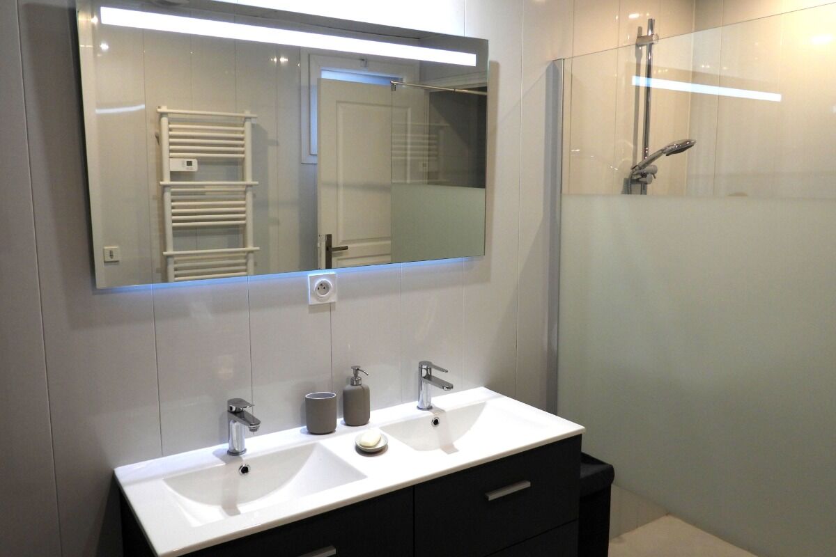 Cette location de vacances n'est malheureusement pas adapté aux personnes à mobilité réduite car une marche se situe avant l'entrée à la salle de douche et le couloir n'a pas la largeur requise pour un fauteuil roulant.