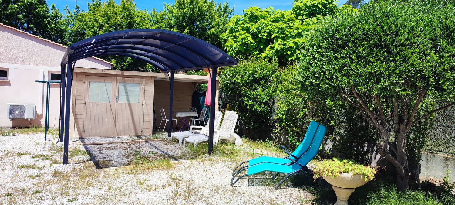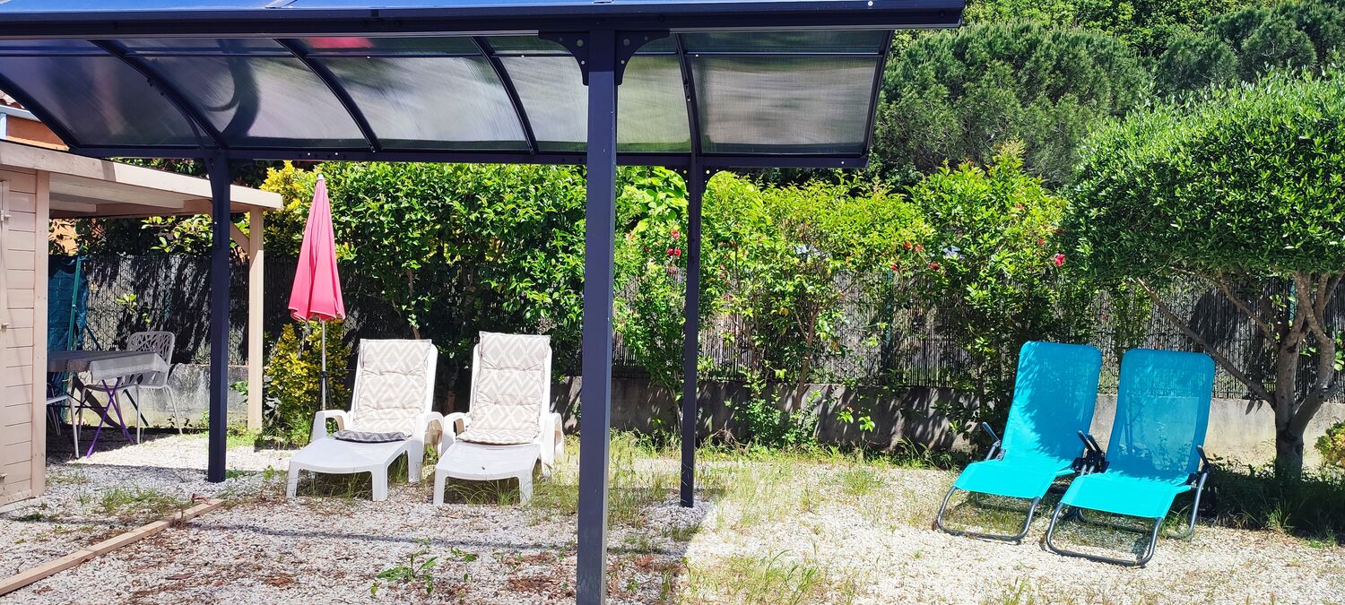 Coin cuisine Cour Jardin attenant Jardin privatif Kitchenette Local vélo/ski/planche à voile Parking privé Plain Pied Salle d'eau privée Salon Salon de jardin Sanitaires privés Séjour