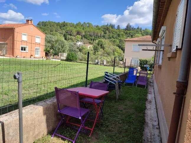 Coin cuisine Entrée indépendante Jardin attenant Jardin privatif Kitchenette Local vélo/ski/planche à voile Mezzanine Parking privé Plain Pied Salle d'eau privée Salon Salon de jardin Séjour Terrain clos