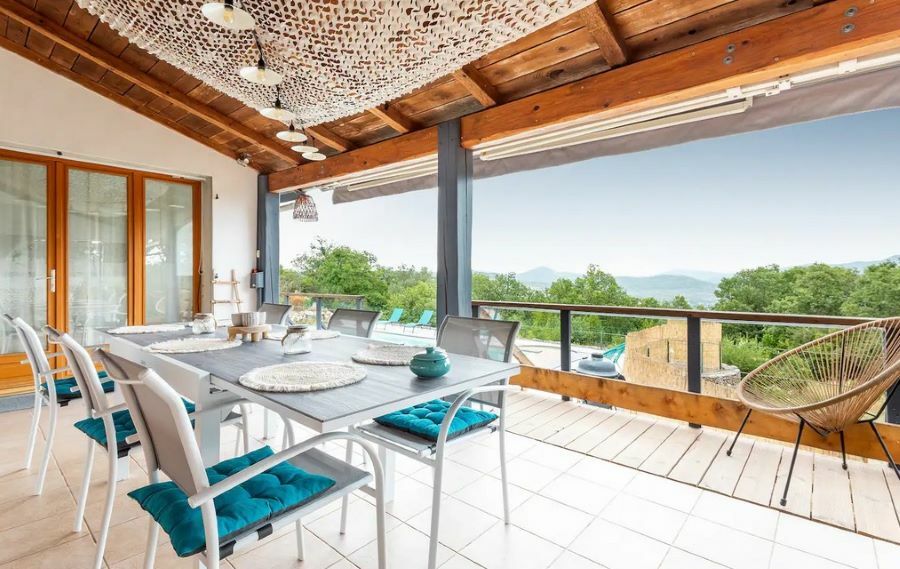 - Une terrasse de 15 m² avec table à manger et chaises.