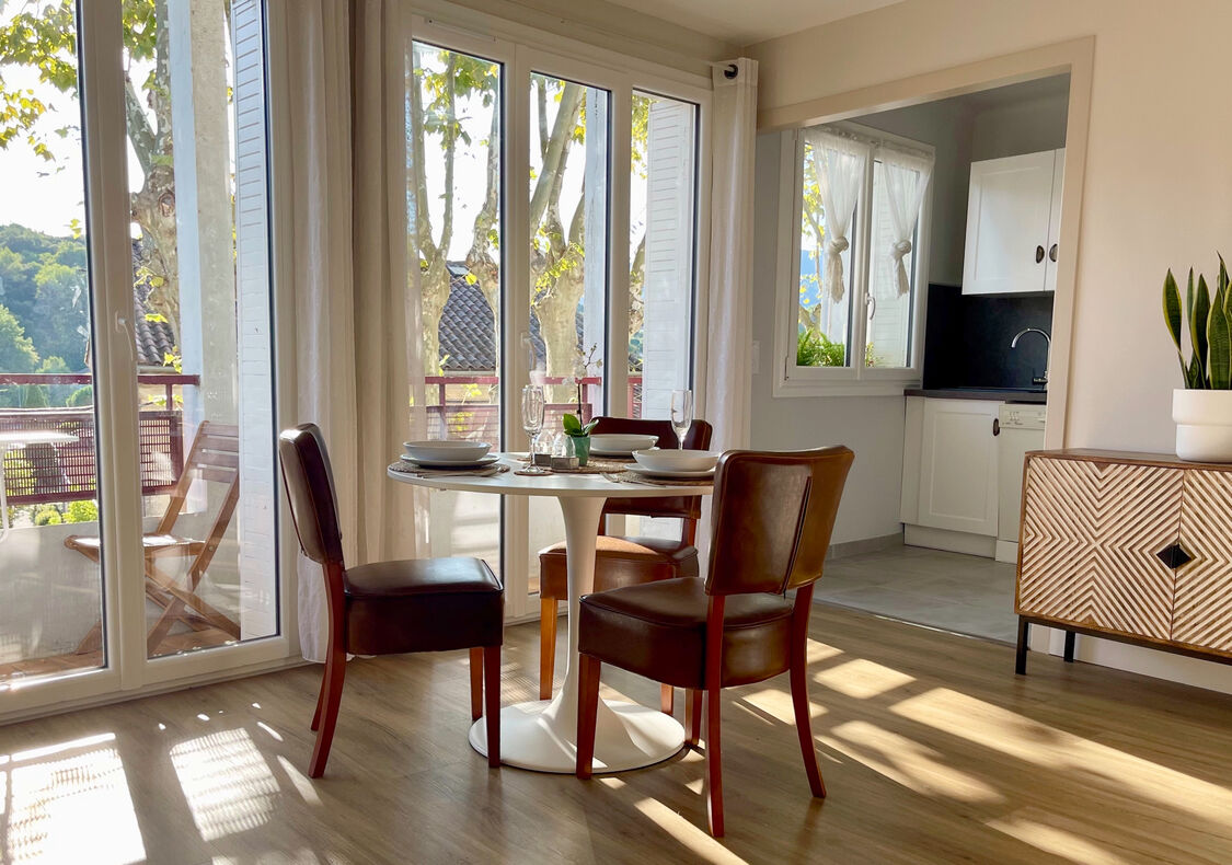 Cet appartement vous charmera par ses grandes baies vitrées qui vous permettront de savourer votre café du matin ou votre apéritif du soir sur votre balcon privé avec vue sur les collines.
