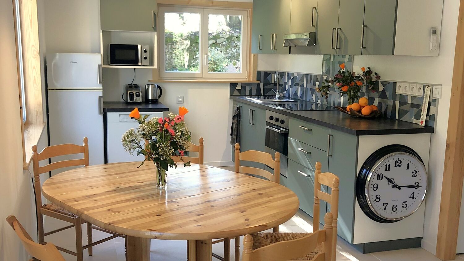 • Cuisine/Salle à manger : bien équipée plaque à induction, four, lave-vaisselle, micro-ondes, réfrigérateur/congélateur, lave-linge .