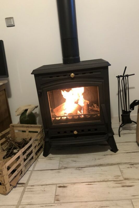 Le poêle à bois ajoute une touche chaleureuse à vos soirées, créant une ambiance conviviale.