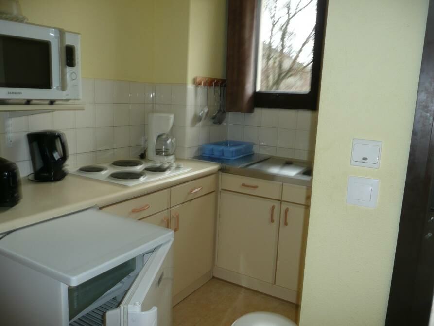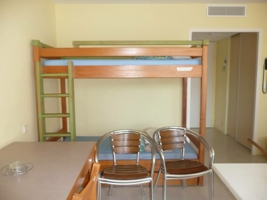 Studio 3/4 personnes de 21 m² au 2ème étage : comprenant séjour/coin-cuisine (canapé-lit 140X190, 2 lits superposés 90X190), salle de bain/wc, terrasse de 12 m².Chauffage électrique/climatisation réversible, laverie en libre-service à la résidence (lave-linge, sèche-linge - jetons en vente à la réception).