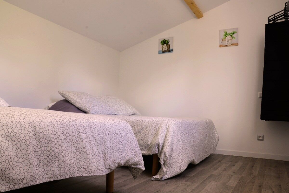 Il offre également une chambre indépendante avec deux lits en 90 cm et une deuxième chambre indépendante avec un lit en 140 cm et un lit en 90 cm.