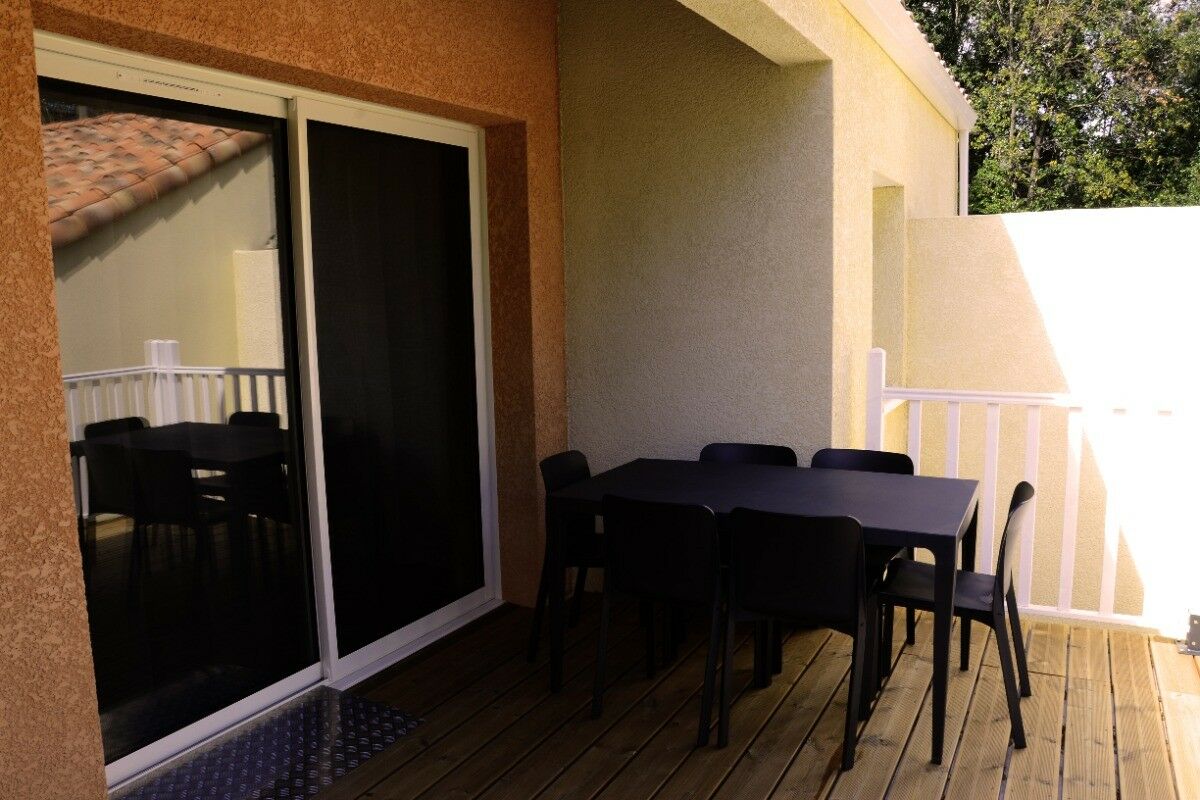 A l'extérieur, vous pourrez profiter d'une terrasse en bois avec salon de jardin donnant sur un jardin verdoyant. L'appartement est également équipé d'une climatisation partielle pour un confort optimal et d'une connexion WIFI gratuite pour rester connecté. Le linge de lit et les serviettes de bains fournis.
