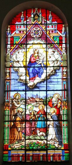 Achevée définitivement au 19ème siècle, l'église se caractérise par un plan en croix latine à chœur décentré, qui symbolise la tête penchée du Christ sur la croix.