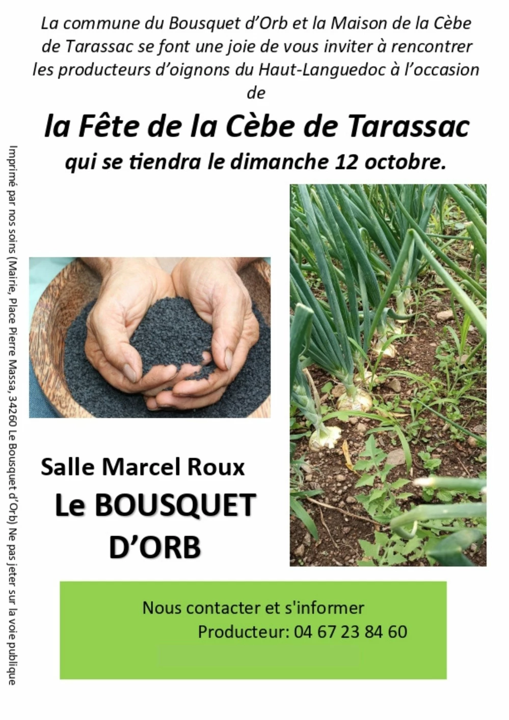 Le dimanche 12 octobre, la salle Marcel Roux accueillera la Fête de la Cèbe de Tarassac, organisée par la commune et la Maison de la Cèbe de Tarassac. Une journée festive pour découvrir ou redécouvrir cet oignon du Haut-Languedoc.