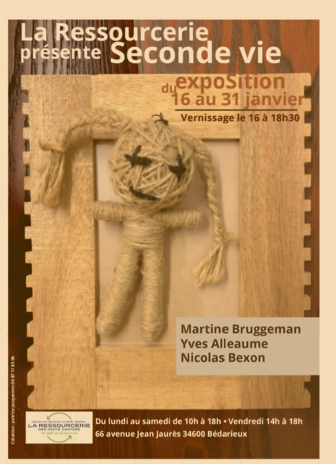 La ressourcerie organise l'exposition Seconde Vie » du 16 au 31 janvier des artistes Martine Bruggeman, Yves Alleaume et Nicolas Bexon.
